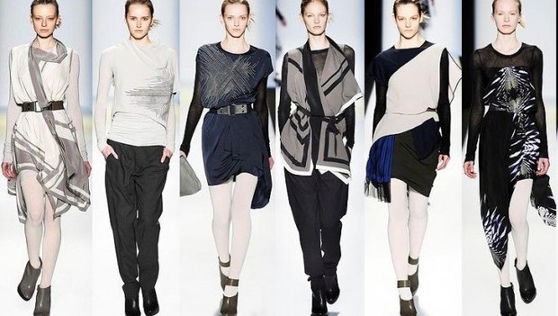 mor ve mürdüm tonları, pelerinler, metalik kumaşlar ön plandaydı.bcbg 2012 Sonbaharlondra Tip